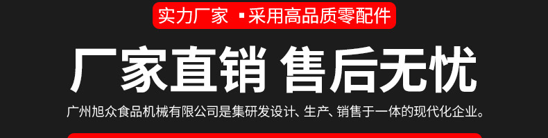 廣州旭眾食品機(jī)械有限公司是一家集科研開發(fā),生產(chǎn)設(shè)計(jì),營(yíng)銷服務(wù)為一體的現(xiàn)代化生產(chǎn)企業(yè)?,F(xiàn)代化生產(chǎn)車間,精湛制造技術(shù),所產(chǎn)機(jī)械歷經(jīng)市場(chǎng)重重考驗(yàn),不斷贏得海內(nèi)外客戶的贊譽(yù)。