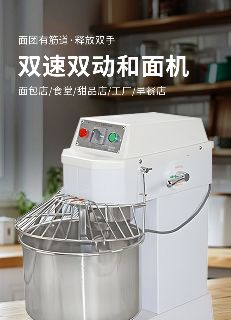 SZH-30型雙速雙動和面機(jī),本機(jī)適合攪拌各種面包、包子、饅頭、湯圓、披薩餅面團(tuán),專業(yè)設(shè)計避免面團(tuán)過分升溫并確保面團(tuán)含氧量。過載、缺相保護(hù)裝置,防護(hù)罩安全連動裝置。