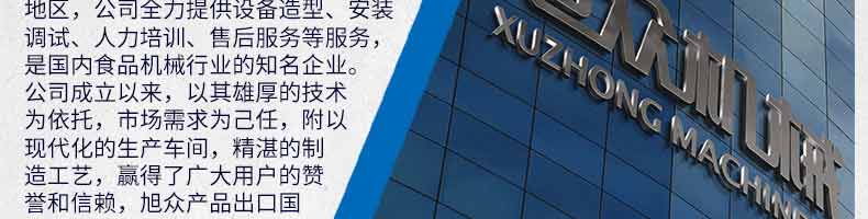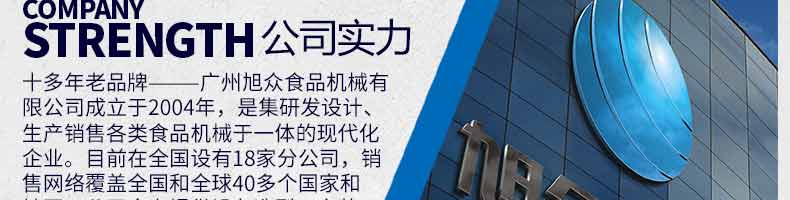 廣州旭眾食品機(jī)械有限公司是一家集科研開發(fā),生產(chǎn)設(shè)計,營銷服務(wù)為一體的現(xiàn)代化生產(chǎn)企業(yè)?,F(xiàn)代化生產(chǎn)車間,精湛制造技術(shù),所產(chǎn)機(jī)械歷經(jīng)市場重重考驗,不斷贏得海內(nèi)外客戶的贊譽(yù)。