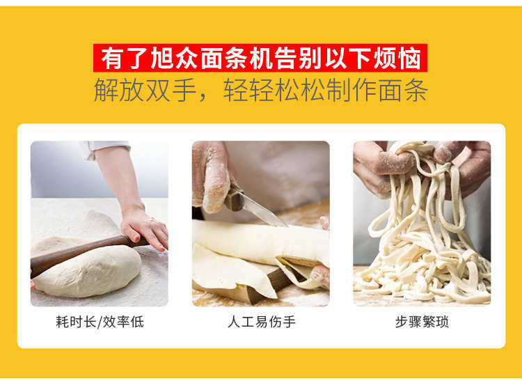 MTJ-30型臺式面條機(卡把式),1小時可做60斤面條快速做勁道手搟面,有了旭眾面條機告別以下煩惱解放雙手,輕輕松松制作面條