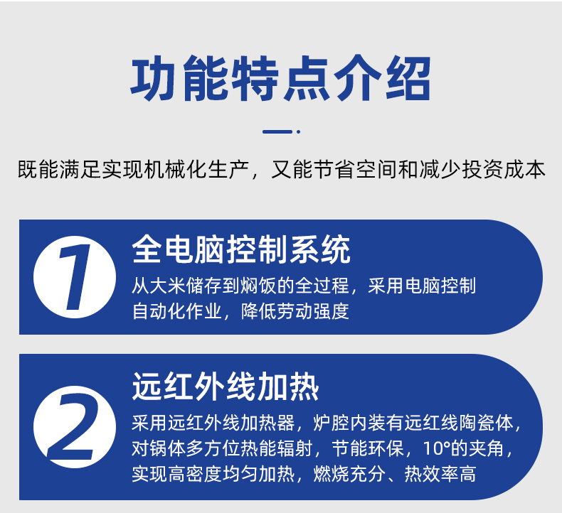 機(jī)械手全自動米飯生產(chǎn)線,實(shí)力大咖 商用好幫手,提供培訓(xùn)、指導(dǎo)和工藝傳授,品牌服務(wù)有保障。遠(yuǎn)紅外加熱、智能控制、立體燜飯、不粘鍋、熱效率高、不銹鋼結(jié)構(gòu)、雙層保溫、節(jié)能環(huán)保。