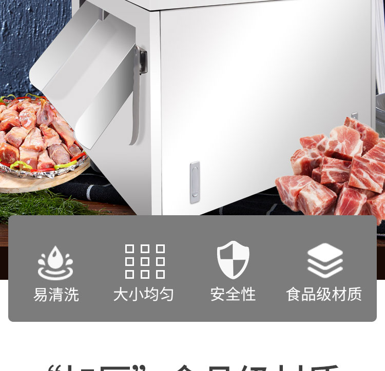 XZW-300魚禽類剁塊機(jī),色禽類剁塊機(jī)適合切凍肉帶骨/不帶骨?!凹雍瘛笔称芳?jí)材質(zhì)安全衛(wèi)生質(zhì)量保證。傳送帶推進(jìn)物料提高效率節(jié)省力氣。