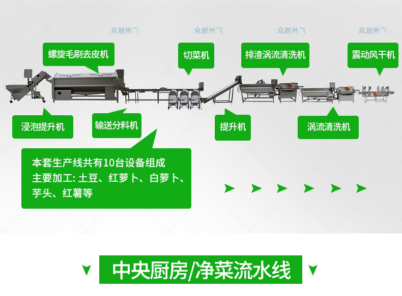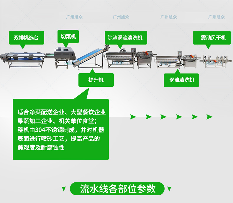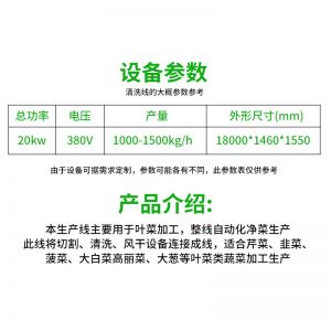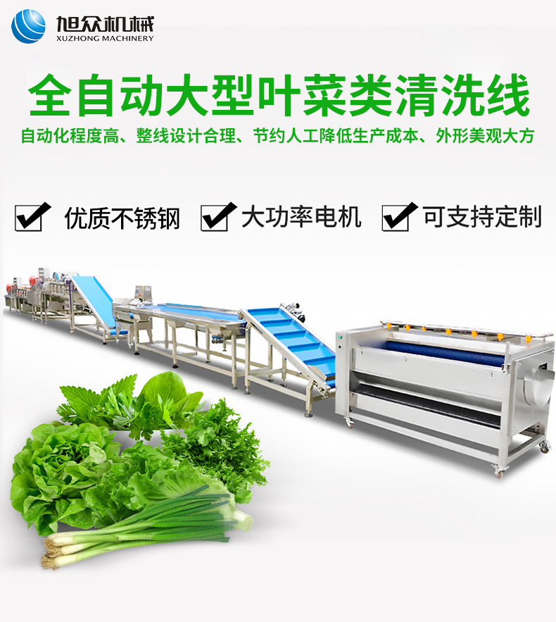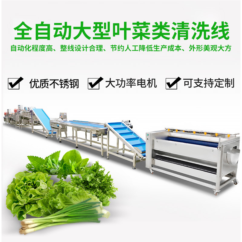 全自動大型葉菜清洗線,自動化程度高、整線設(shè)計(jì)合理、節(jié)約人工降低生產(chǎn)成本、外形美觀大方。主要用于葉菜加工,整線自動化凈菜生產(chǎn)此線將切割、清洗、風(fēng)干設(shè)備連接成線,適合芹菜、韭菜菠菜、大白菜高麗菜、大蔥等葉菜類蔬菜加工生產(chǎn)