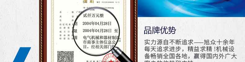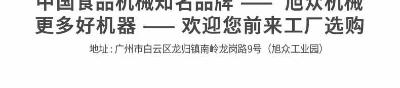 廣州旭眾食品機(jī)械有限公司是一家集科研開發(fā),生產(chǎn)設(shè)計(jì),營(yíng)銷服務(wù)為一體的現(xiàn)代化生產(chǎn)企業(yè)?,F(xiàn)代化生產(chǎn)車間,精湛制造技術(shù),所產(chǎn)機(jī)械歷經(jīng)市場(chǎng)重重考驗(yàn),不斷贏得海內(nèi)外客戶的贊譽(yù)。